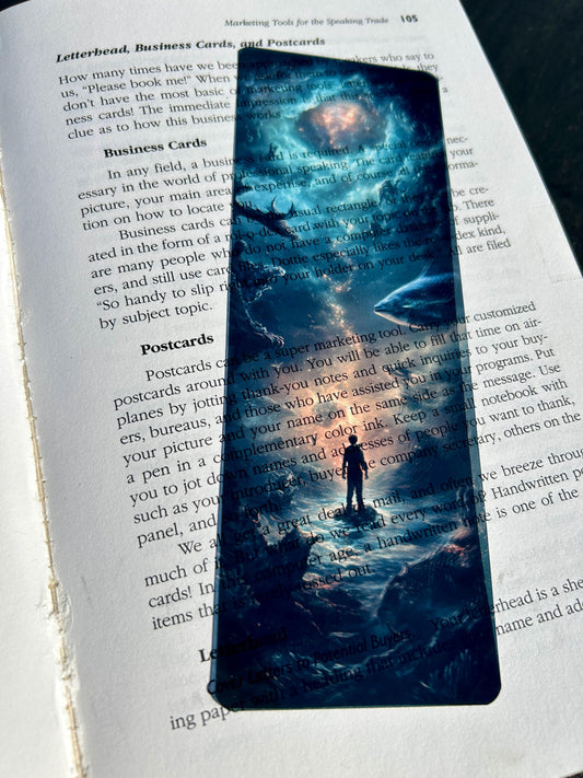 Cosmic Journey Bookmark – Glowing Dreamscape Art | Fantasy Thoughtscape with Bioluminescent Sea Creatures