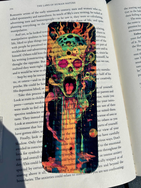 Cosmic Scream Bookmark with Exploding Skull and Molten Galaxy Chaos – Surreal Horror Art for Cosmic Horror Fans, Psychedelic Readers