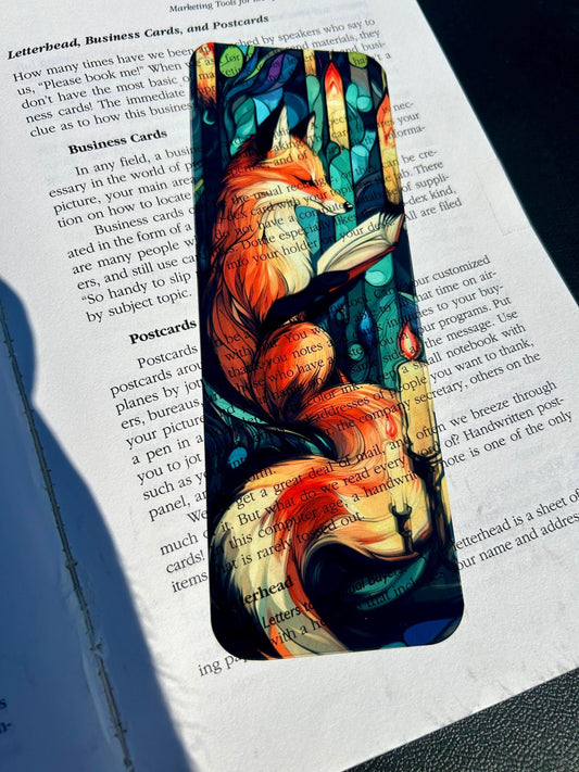 Curious Fox by Candlelight Bookmark – Stained Glass Fox, Nature Bookmark