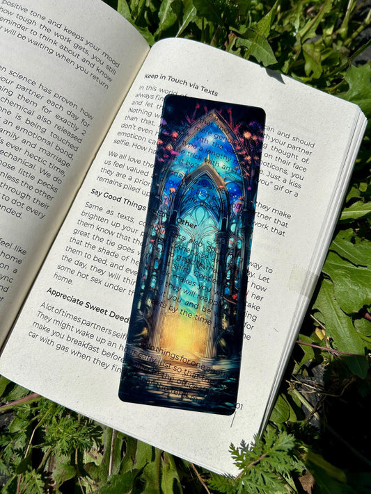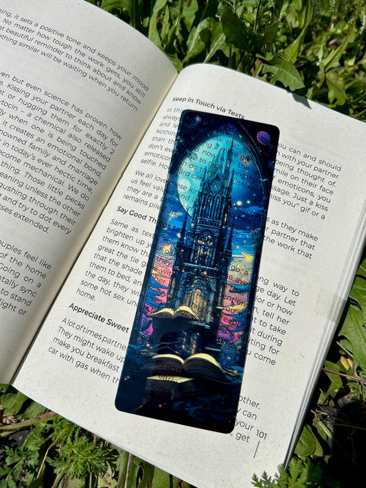 Cathedral Celestial Castle Bookmark - Fantasy Page Marker, Mystical Sky Castle Gift, Unique Book Lover Accessory, Gothic Fairytale Art