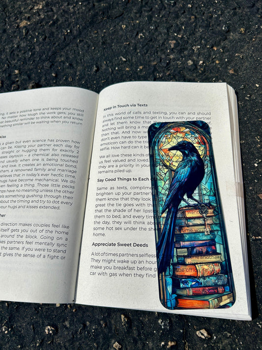 Clever Raven Library Bookmark – Stacked Books & Wise Raven Art, Literary Gothic Gift, Unique Book Lover Accessory