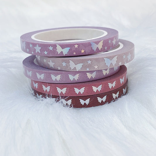 Serenity Cornflower Bat Bow Magic Washi Tape Bundle | 15 + 10 MM | Rose Gold Foil
