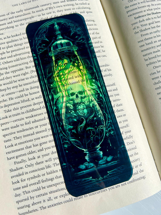 Gothic Poison Bottle Bookmark – Eerie Skull in Glass with Vines | Dark Green Potion Bookmark for Horror & Fantasy LoversPrecio habitual $7.99 USDPrecio habitualPrecio unitario por-