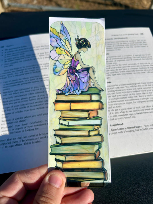 Fairy on Storybook Stack Bookmark with Muted Purples and Stained Glass Wings – Soft Fantasy Art for Thoughtful Readers, Fairy LoversPrecio habitual $7.99 USDPrecio habitualPrecio unitario por-
