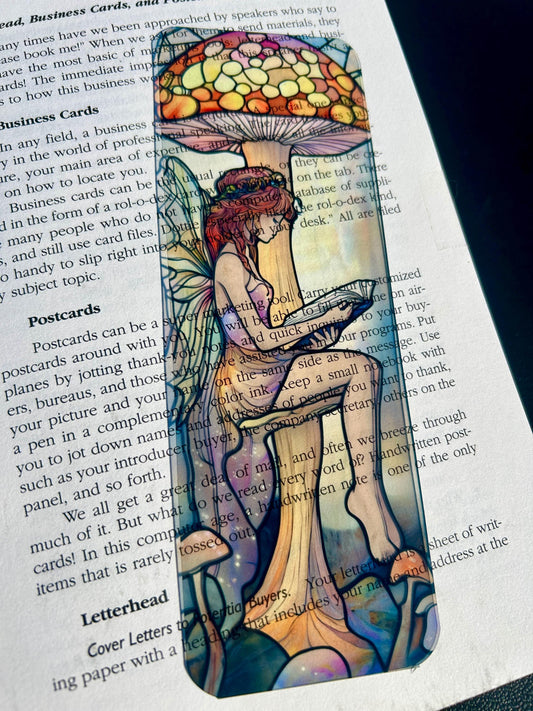Fairy Reading Under Mushroom Bookmark in Pastel Pink and Stained Glass Style – Whimsical Fantasy Art for Book Lovers, Fairy Tale FansPrecio habitual $7.99 USDPrecio habitualPrecio unitario por-