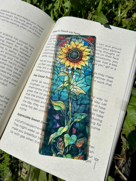 Stained Glass Sunflower Love Bookmark – Radiant Sunflower Art, Heartfelt Gift, Sunflower Gift sun catcher