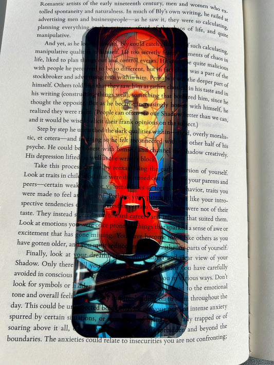Stained Glass Violin Bookmark with Vibrant Fantasy Art – Glossy Laminated Music Lover Bookmark, Classical Instrument Gift for Bookworms