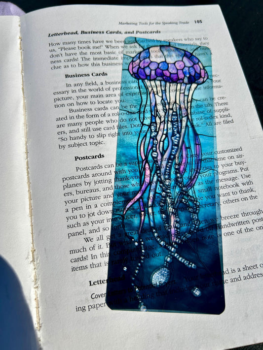 Stained Glass Jellyfish Bookmark – Ocean-Inspired Blue & Purple Art | Unique Underwater Gift for Book Lovers