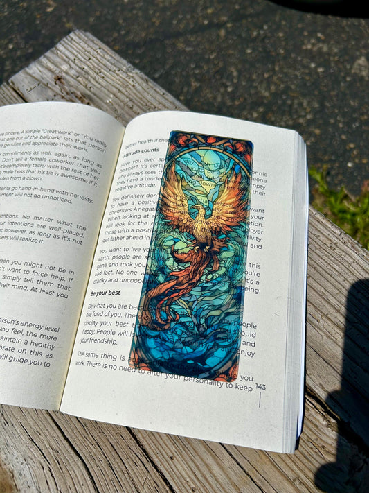 Rise from Ashes Phoenix Bookmark – Majestic Rebirth Design, Fiery Phoenix Rising
