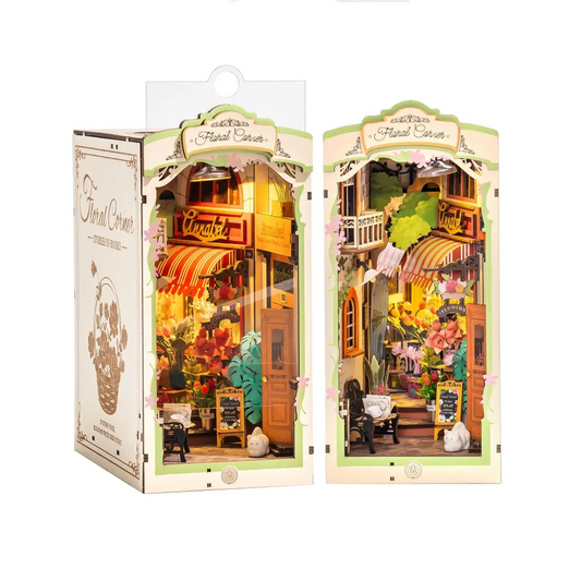 Kit de rincón de libros para armar una casa en miniatura, con inserto de estantería, sujetalibros de madera 3D con LED, ideal como regalo para adolescentes y adultos (Rincón floral o Venecia romántica).