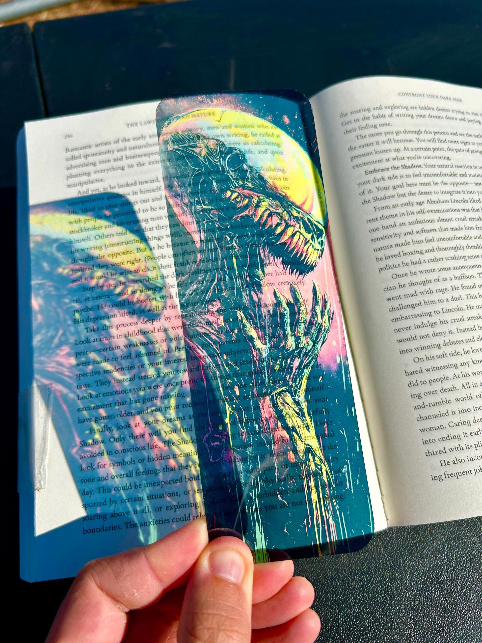 🚀 Dive into the terrifying beauty of deep space! This Neon Xenomorph Alien Bookmark features a sinister alien creature rendered in jaw-dropping neon colors — glowing yellows, electric pinks, and cosmic teals.