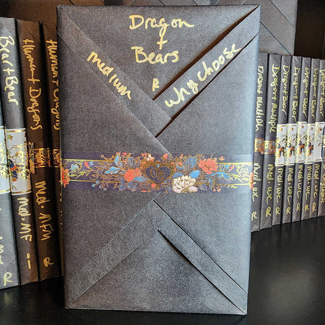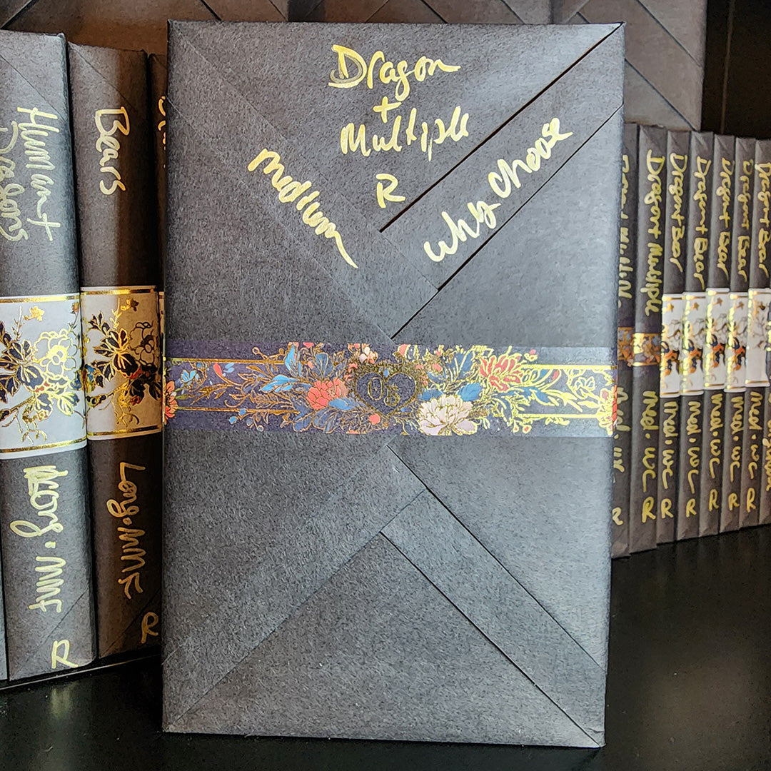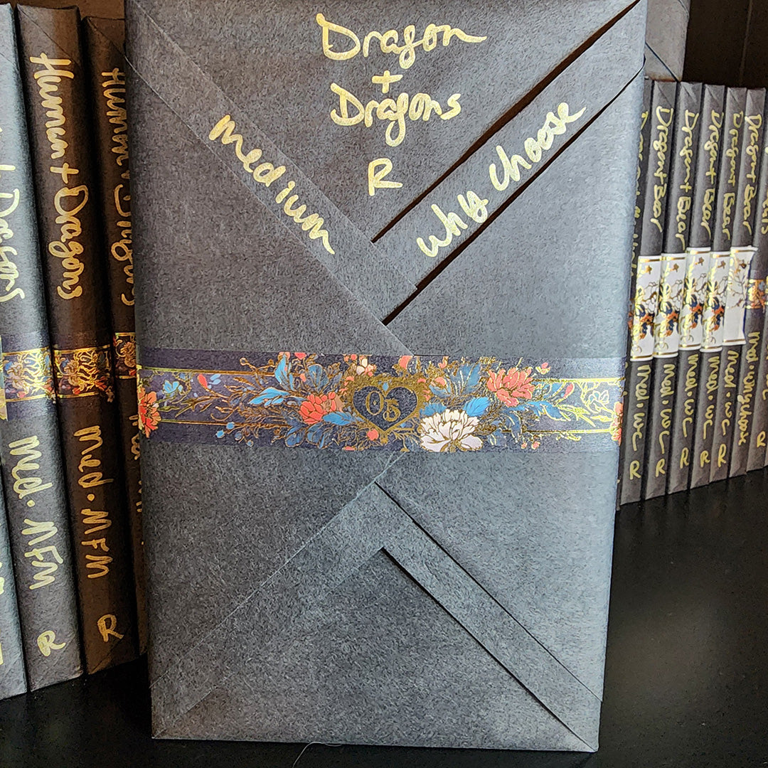- Presentación ingeniosa : los libros están envueltos elegantemente en un envoltorio estilo kimono, sellados con cinta washi laminada personalizada con el logotipo de Ophelia, lo que mejora la experiencia de desempaquetado.