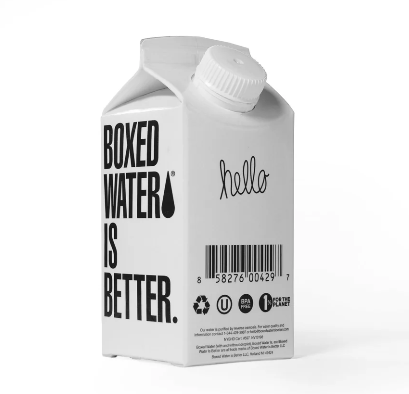 Packaged in a recyclable, paper-based carton made from renewable resources, Boxed Water is the smart choice for both your health and the planet.