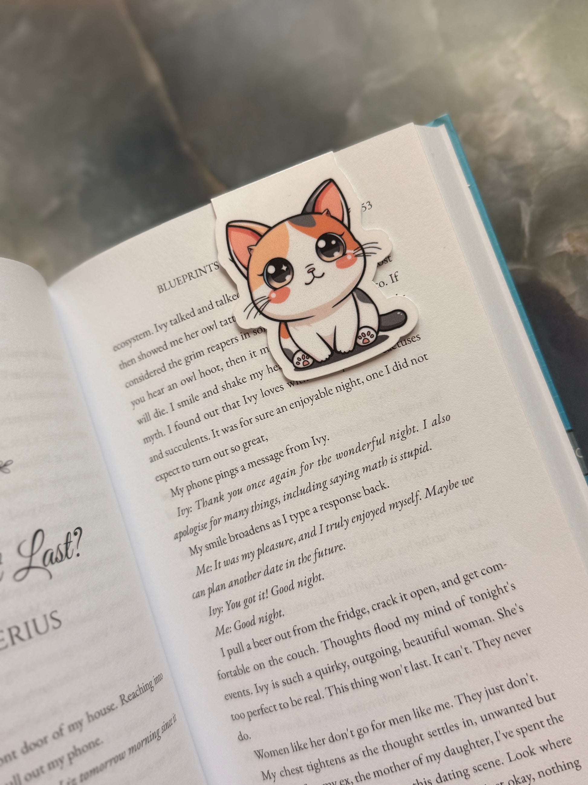 Purr-fectly sweet and irresistibly cuddly, this 5” magnetic bookmark features an adorable wide-eyed calico cat that will steal your heart (and your page). Whether you’re deep into a cozy fantasy or escaping into a fluffy rom-com, this little feline friend will keep your spot safe with a gentle magnetic grip.