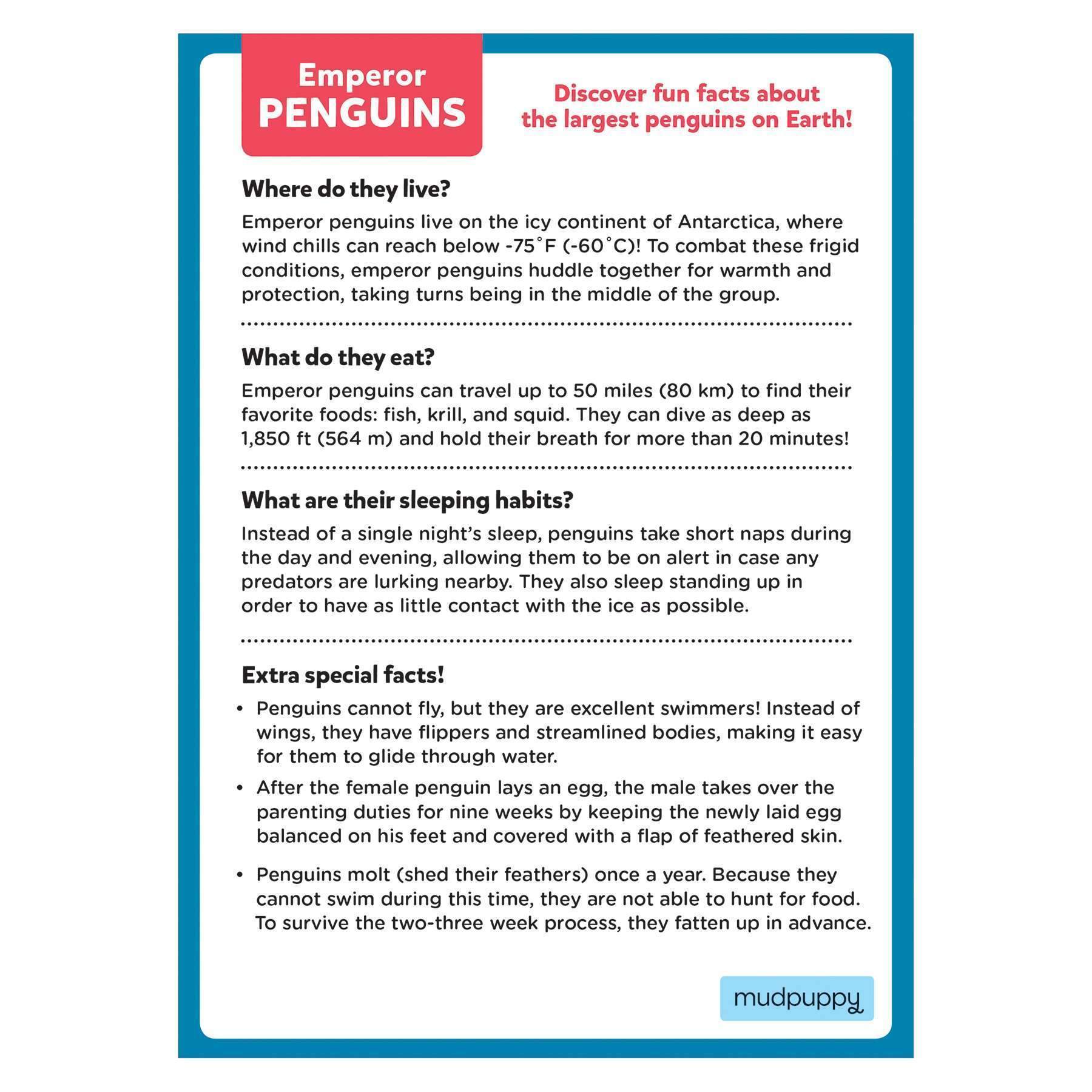 Emperor Penguin Mini Puzzle from Mudpuppy is a small size puzzle featuring a realistic image of an Emperor Penguin in its natural habitat. The 48 piece finished puzzle measures 8 x 5.75" so it’s perfect for train or airline tray tables. A two-sided insert includes an image of the puzzle on one side and fun facts about the Emperor Penguin on the other!