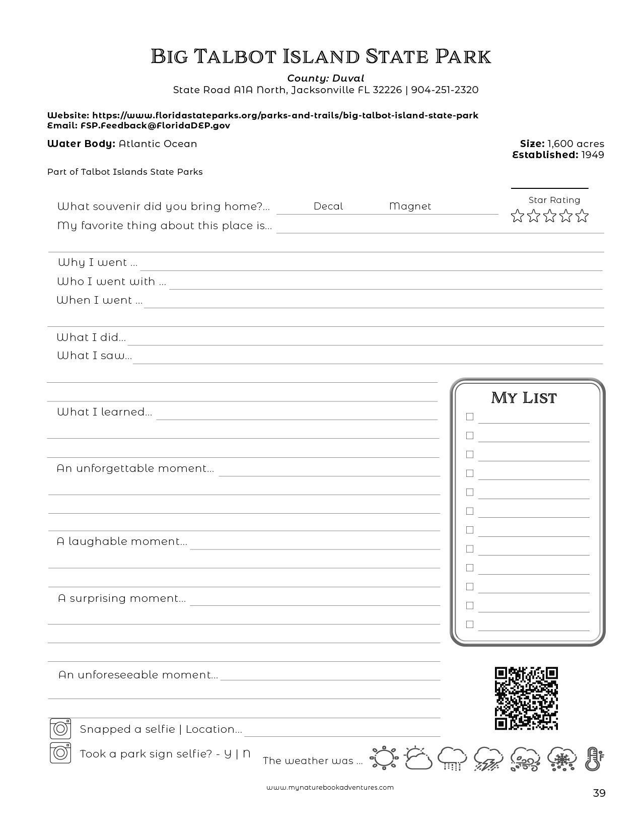 THE RIGHT SIDE INCLUDES PARK INFORMATION AND GIVES YOU A PLACE TO SHARE THE SPECIAL MOMENTS ABOUT YOUR JOURNEY