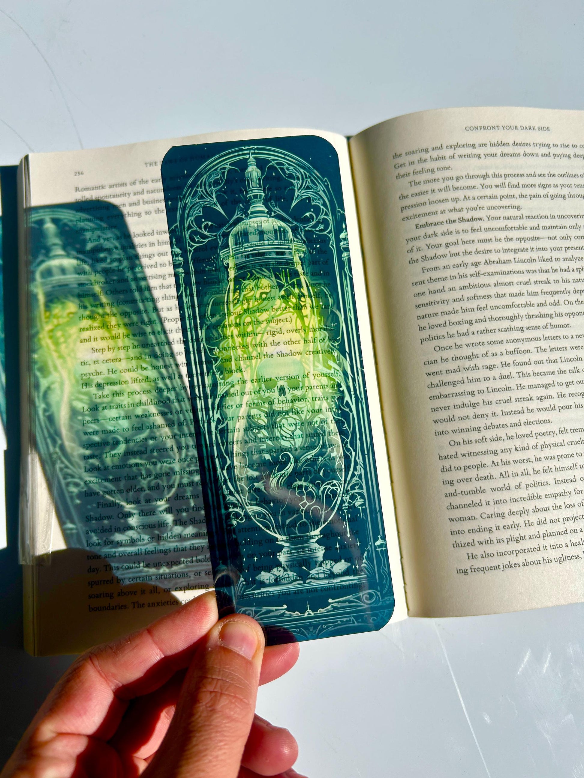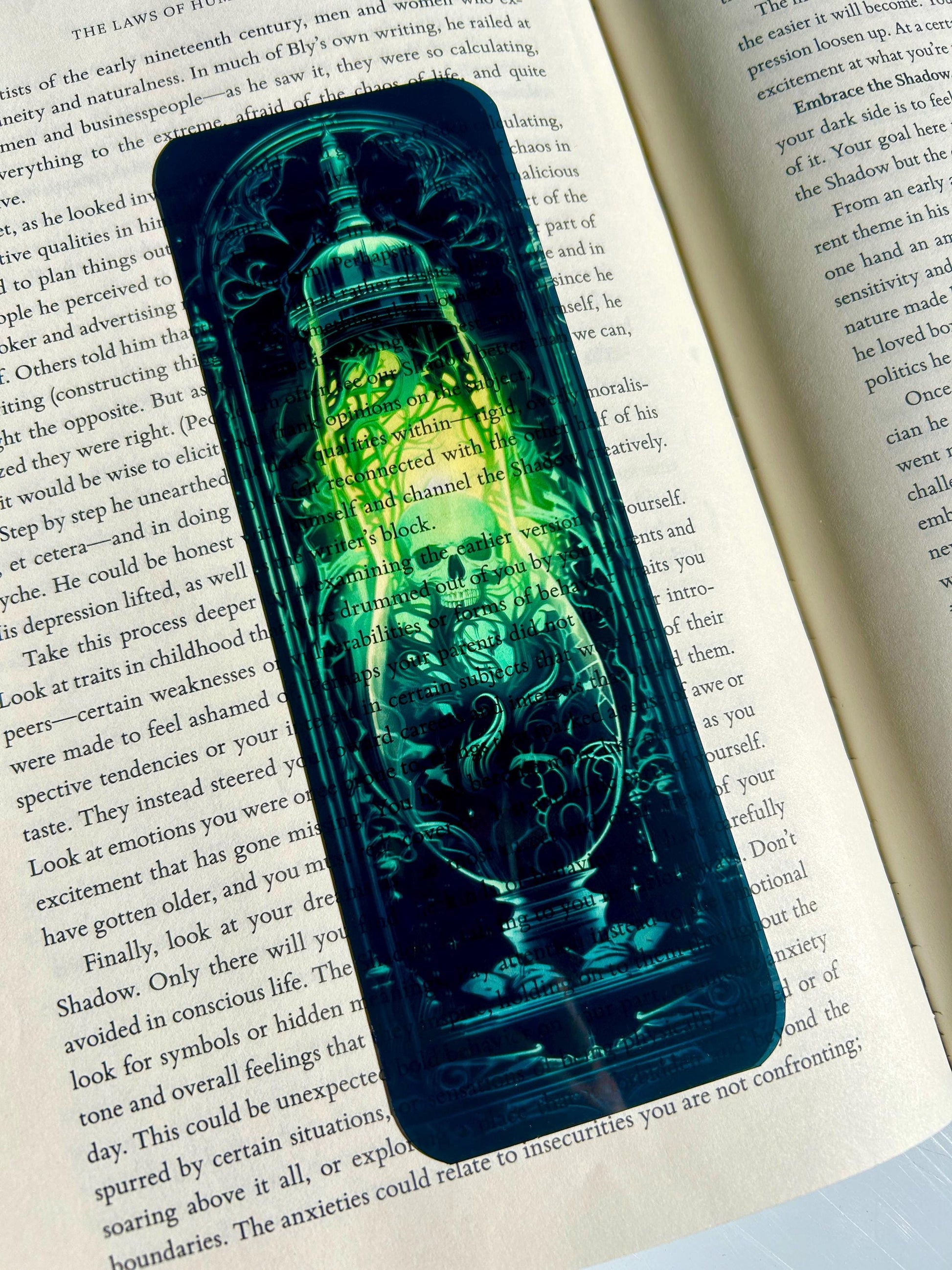 Gothic Poison Bottle Bookmark – Eerie Skull in Glass with Vines | Dark Green Potion Bookmark for Horror & Fantasy Lovers