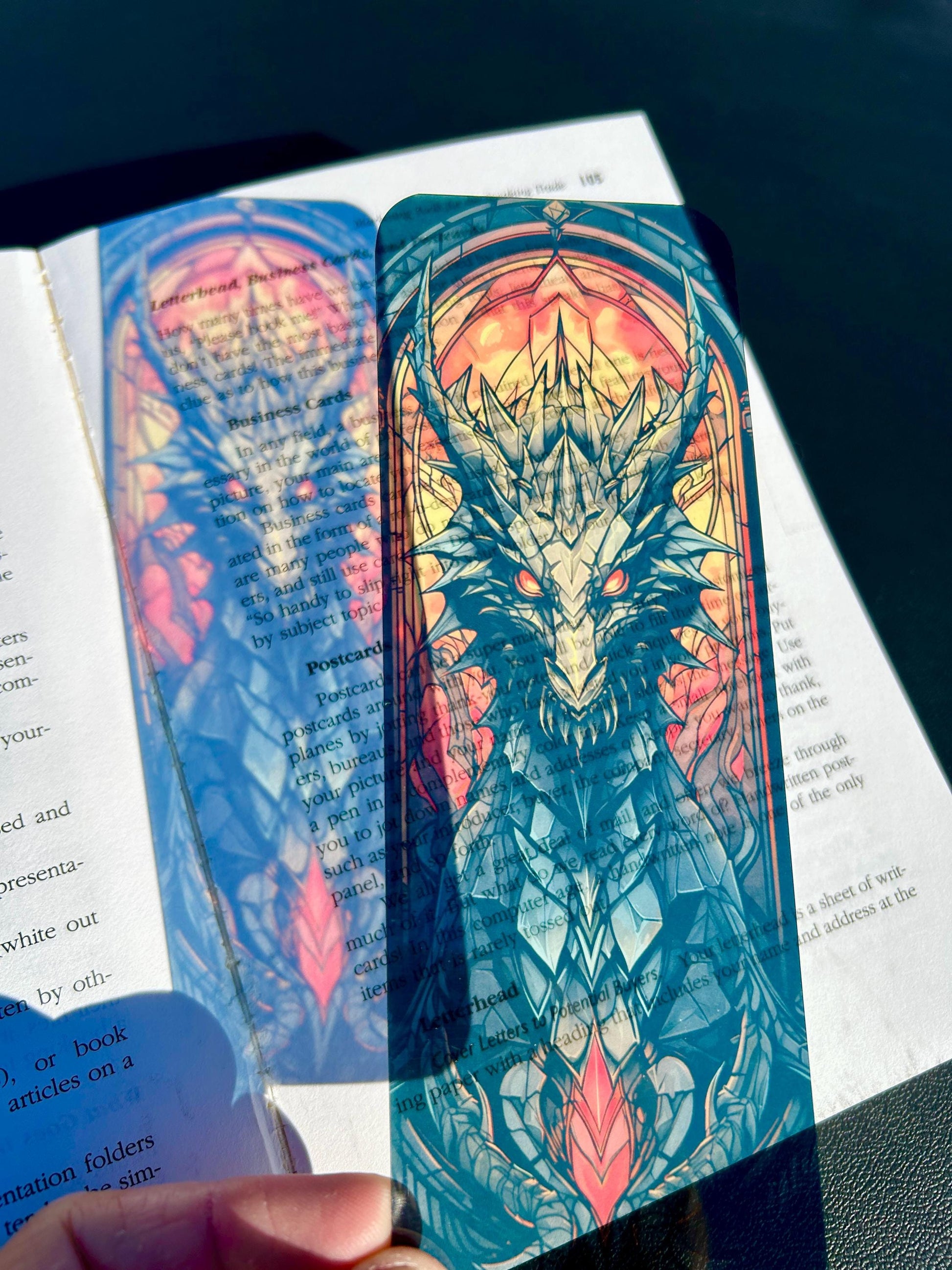 Unleash the fire within with this powerful dragon stained glass bookmark 🐉🔥 Featuring a molten red glow, jagged obsidian scales, and eyes that burn like embers, this piece commands attention on every page you turn 🖤📖
