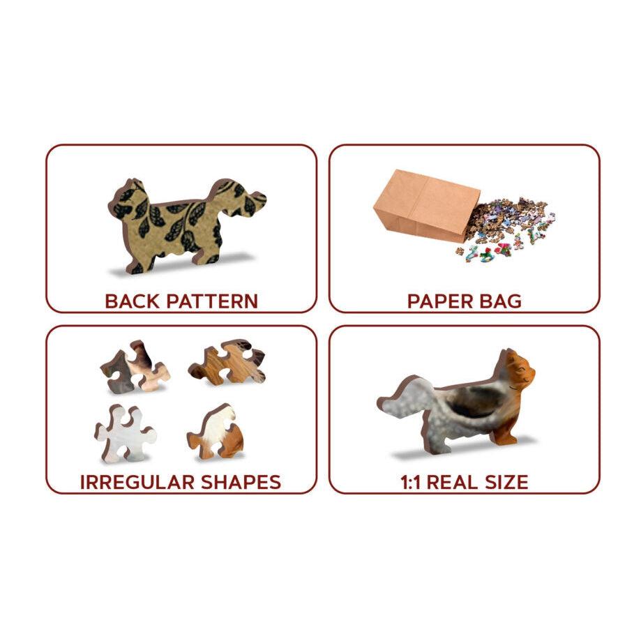 Each puzzle contains numerous unique shapes, characters, figures, and symbols that are cut seamlessly into the pattern. Think of these as mysterious little surprises each puzzle experience offers. These puzzles offer a high quality, rich beautiful image on the front and a detailed wallpaper style pattern on the back. Wooden City double-sided wooden puzzles offer a unique building experience that is sure to captivate puzzle enthusiasts of all ages.