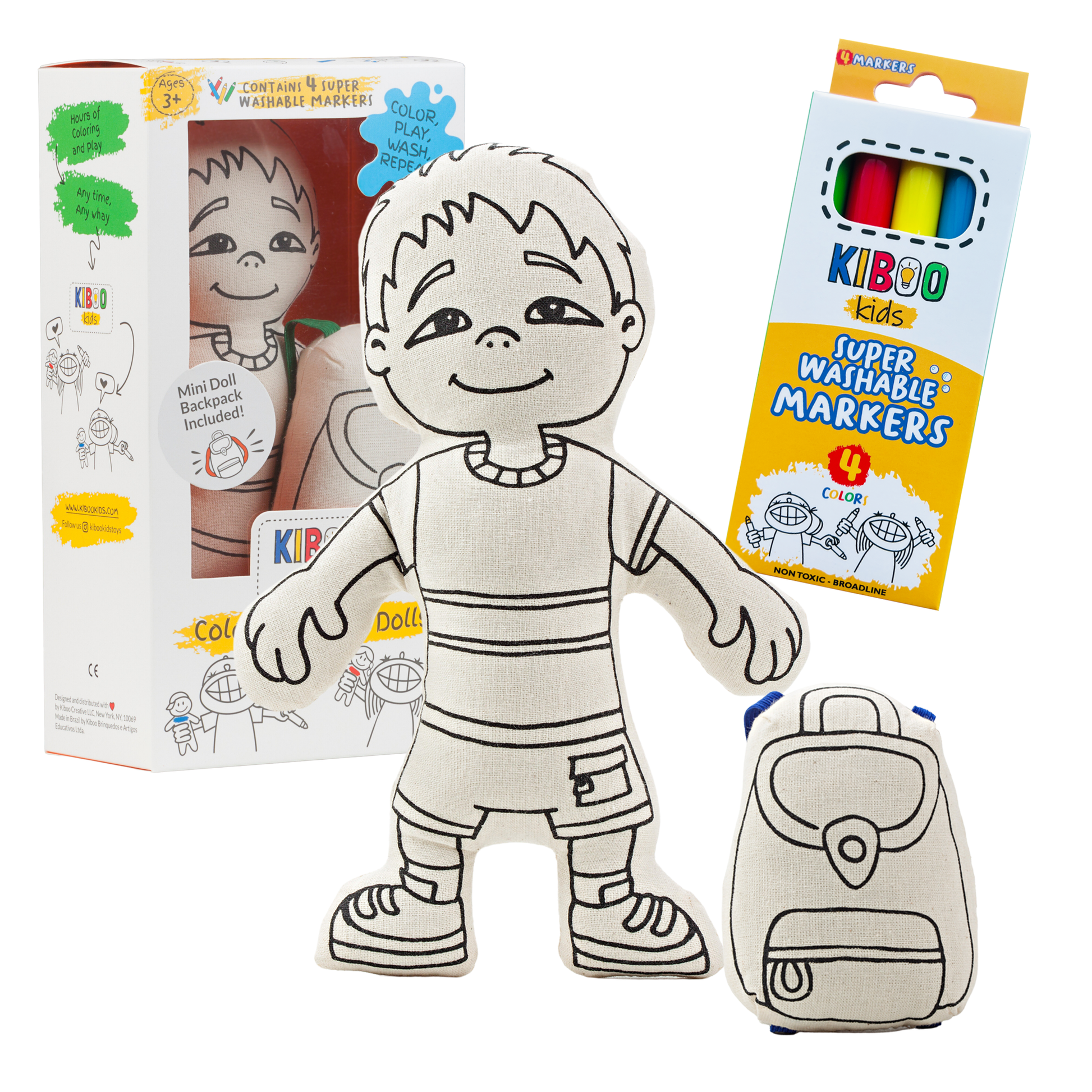 Kiboo Kids: Boy with Pocket Shorts - Colorable and Washable Doll for Creative Play