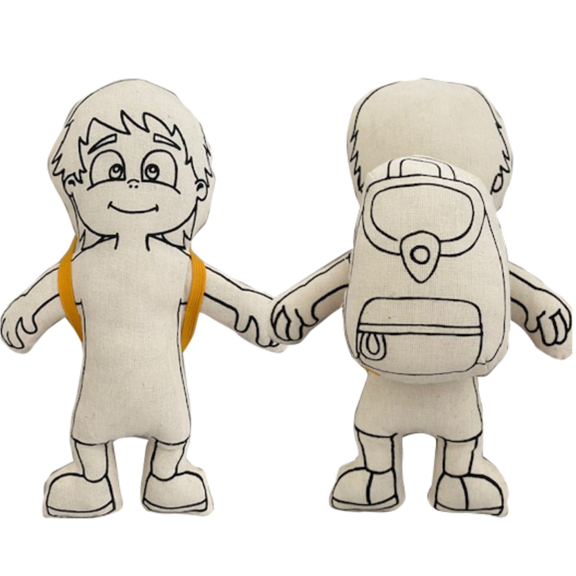 Expertly crafted from 100% cotton canvas fabric and filled with soft silicone fiber, the doll is both cuddly and durable, perfect for coloring and play. Its tiny backpack adds an extra layer of fun and creativity. The doll measures 6 1/2 inches in width and 9 inches in height, making it an ideal size for little hands.