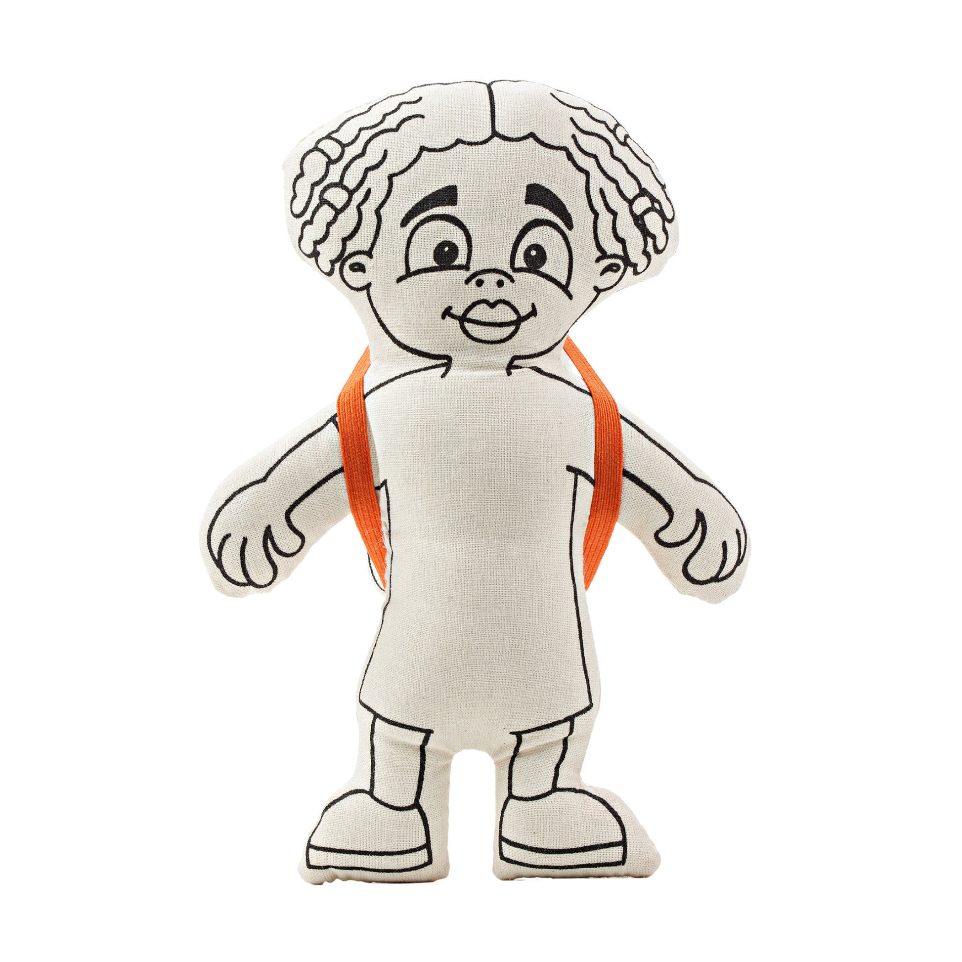 Expertly crafted from 100% cotton canvas fabric and filled with soft silicone fiber, the doll is both cuddly and durable, perfect for coloring and play. Its tiny backpack adds an extra layer of fun and creativity. The doll measures 6 1/2 inches in width and 9 inches in height, making it an ideal size for little hands.