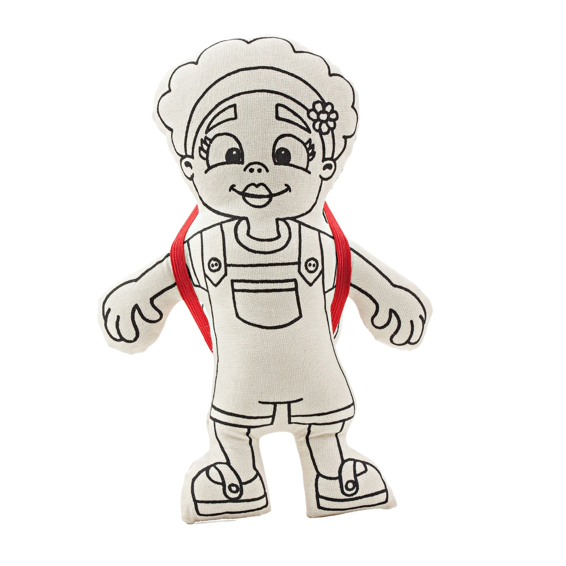 Encourage imaginative play with this Doll with Flower Headband and Mini Doll Backpack! 100% cotton, soft, washable, and ready for coloring. Kids will love going on adventures with this cuddly companion. Endless possibilities for creative fun!