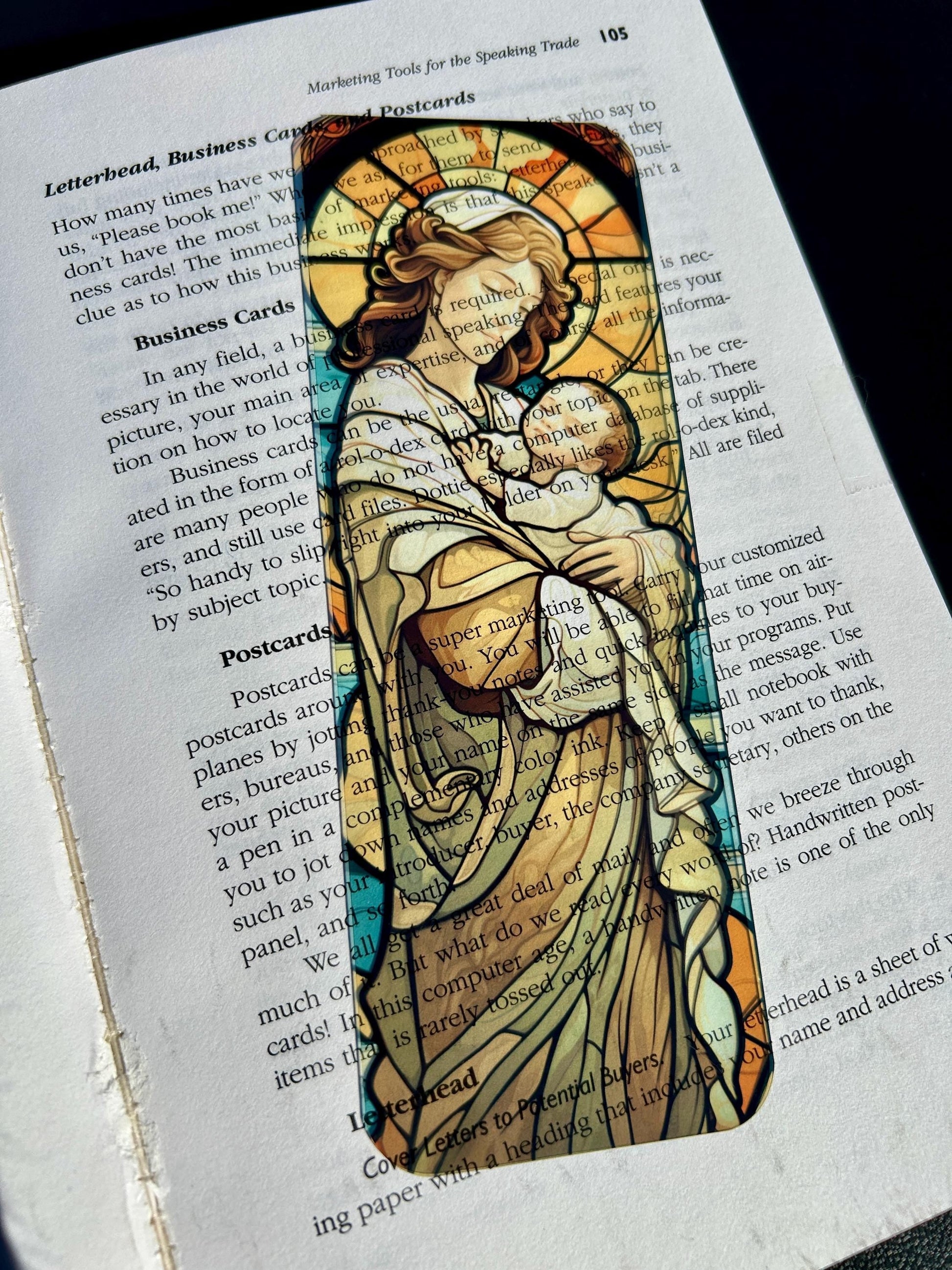 Hold a symbol of sacred tenderness in your hands with this Madonna and Child stained glass bookmark 🕊️💛