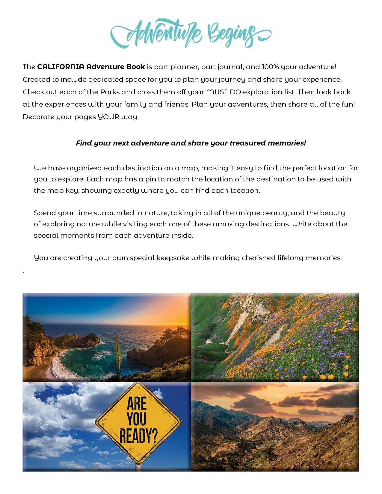 Spend your time surrounded in nature, taking in each unique place while exploring California’s amazing adventures. Save your special moments from each adventure inside. You are creating your own special keepsake while making cherished lifelong memories.