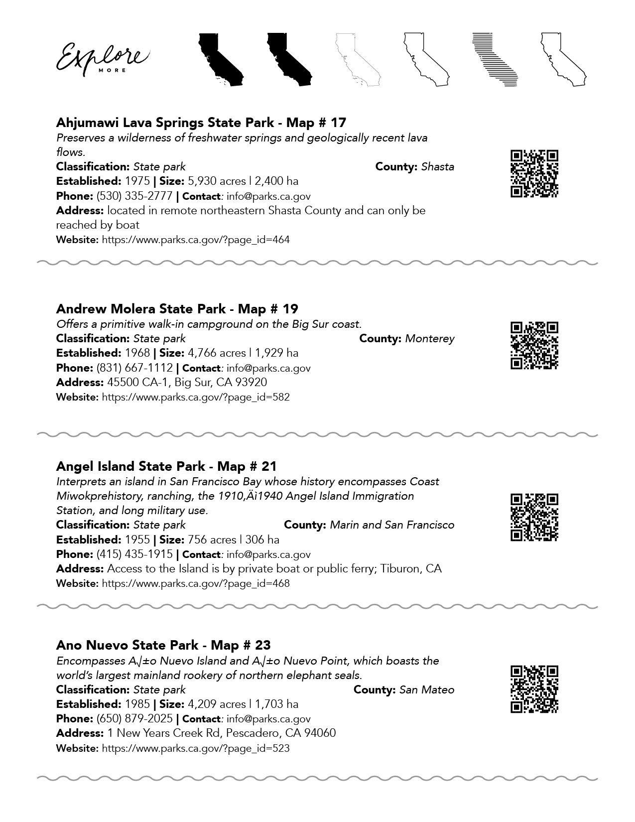 We’ve included details on each destination giving you quick access to the address, phone number, website and a QR code for each and every location. Plus you’ll find a yearly calendar inside to help plan all your upcoming adventures. We want you to spend every moment of your adventures enjoying every one of these amazing places!
