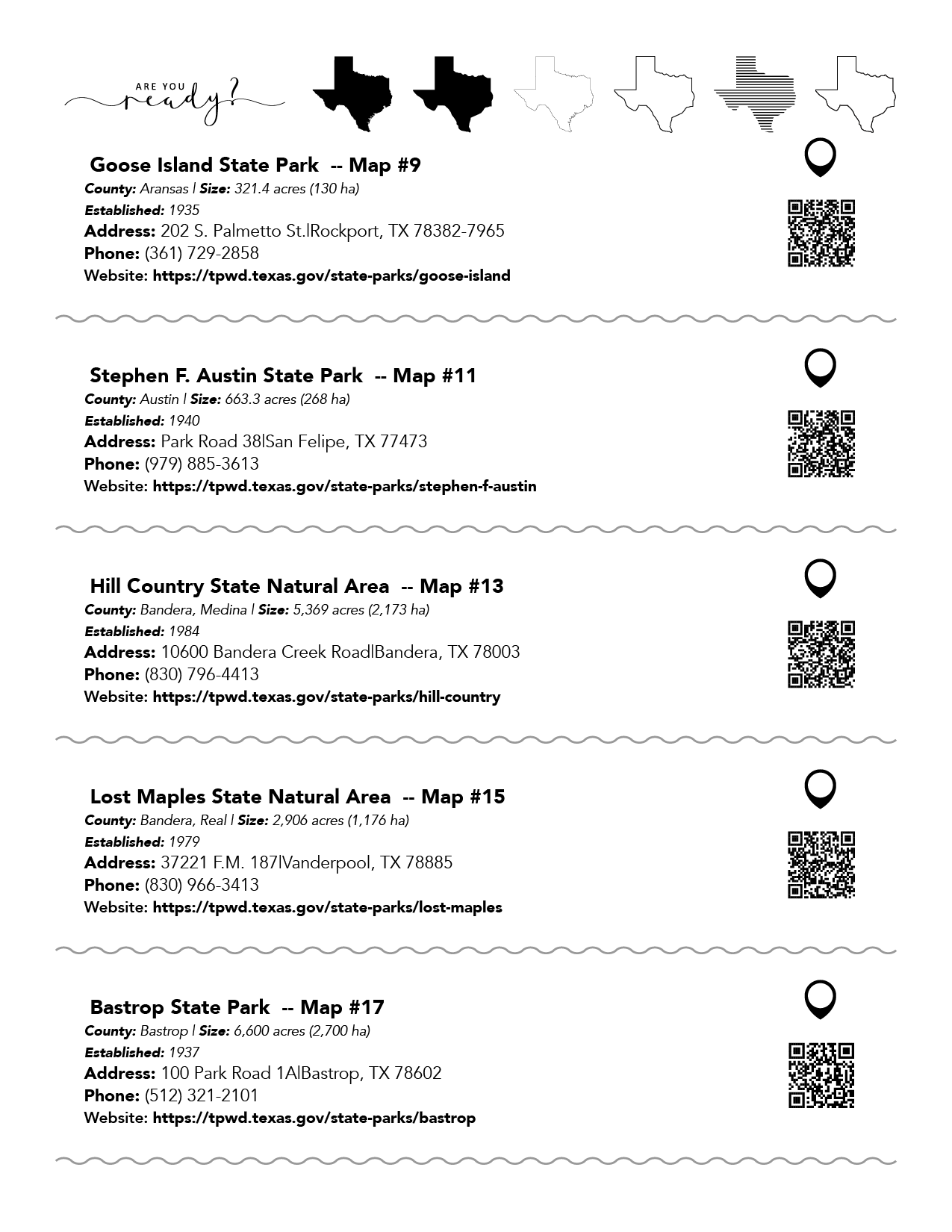 We’ve included details on each destination giving you quick access to the address, phone number, website and a QR code for each and every location. Plus you’ll find a yearly calendar inside to help plan all your upcoming adventures. We want you to spend every moment of your adventures enjoying every one of these amazing places!