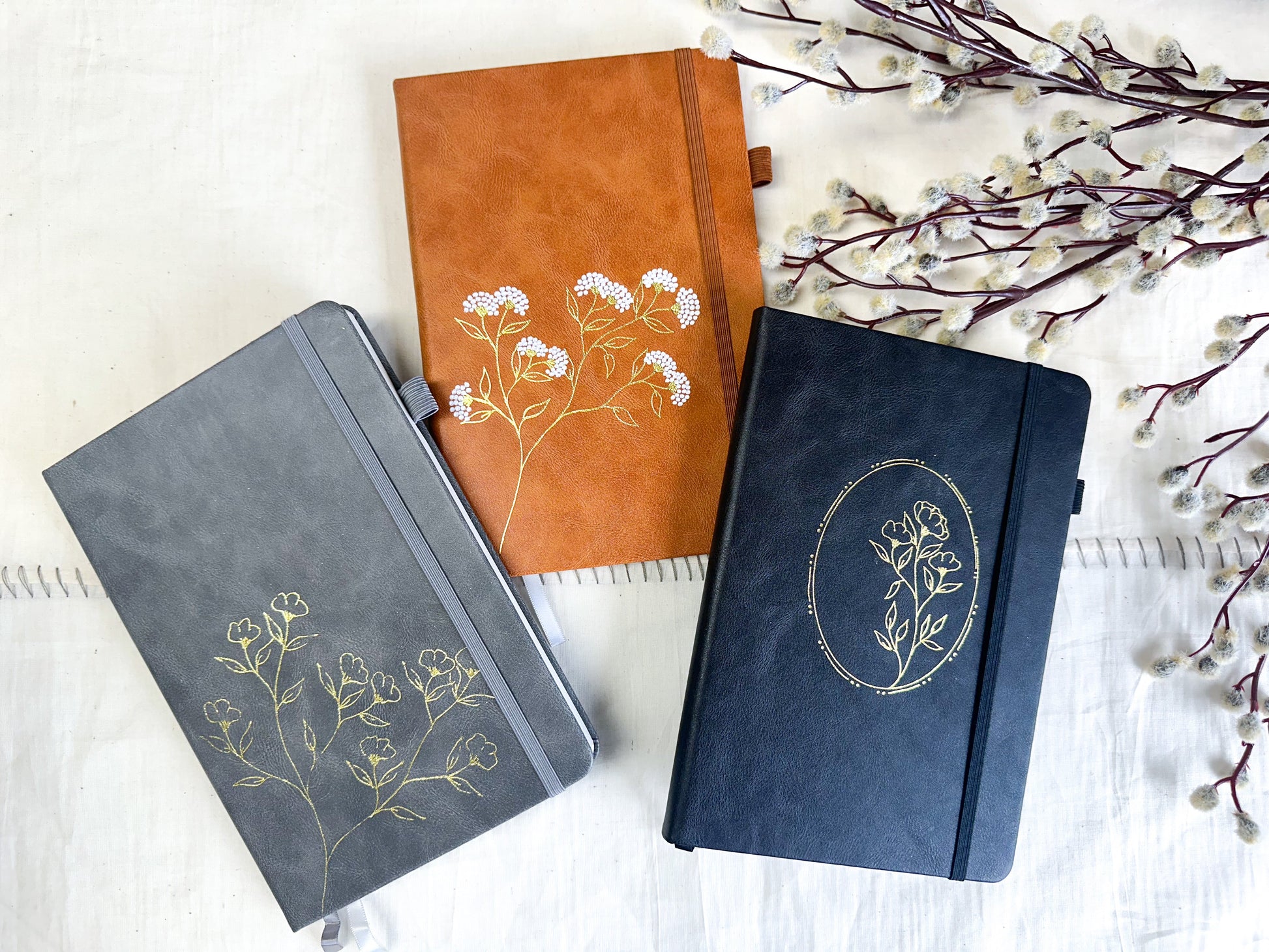 One of a kind, lined journal. Cover is designed and decorated with foil and paint by our in-house artist. Each journal is drawn by hand so there will never be another one exactly like it.