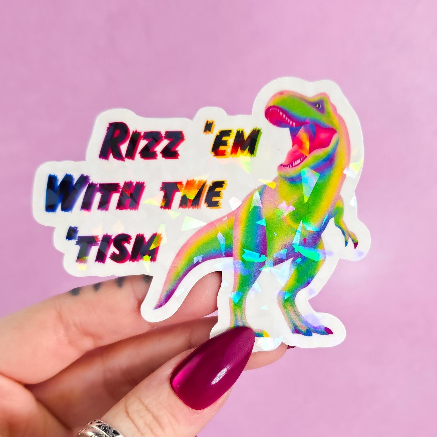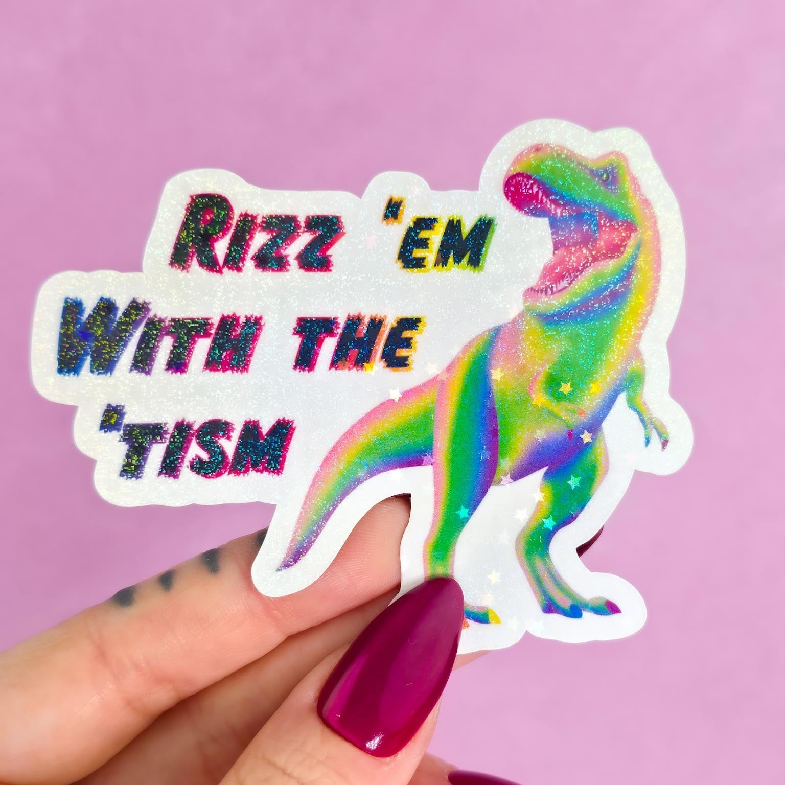 Rizz ‘em with the ‘Tism T-Rex Sticker
