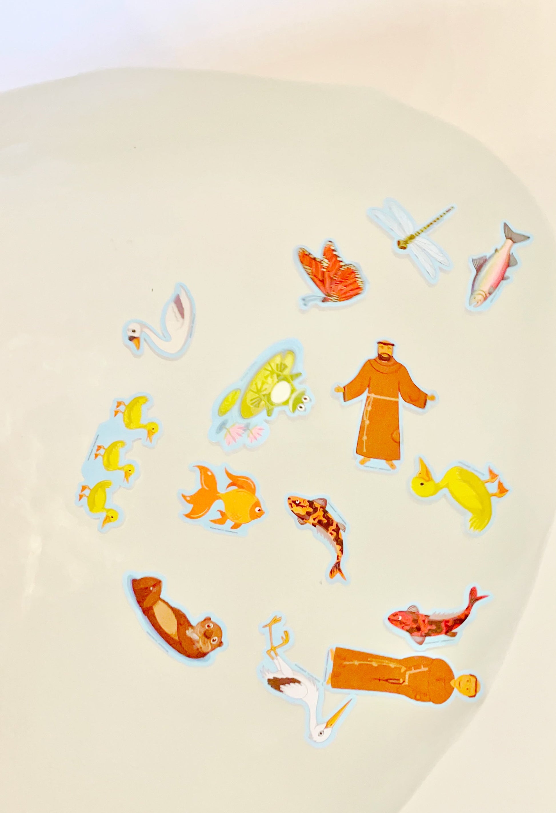 Turn bath or shower time into holy play with our brand new St. Francis & Friends Bath Set. St. Francis & St. Anthony loved animals and what better place to pretend-play with pond friends than with a toy surrounded with water?!