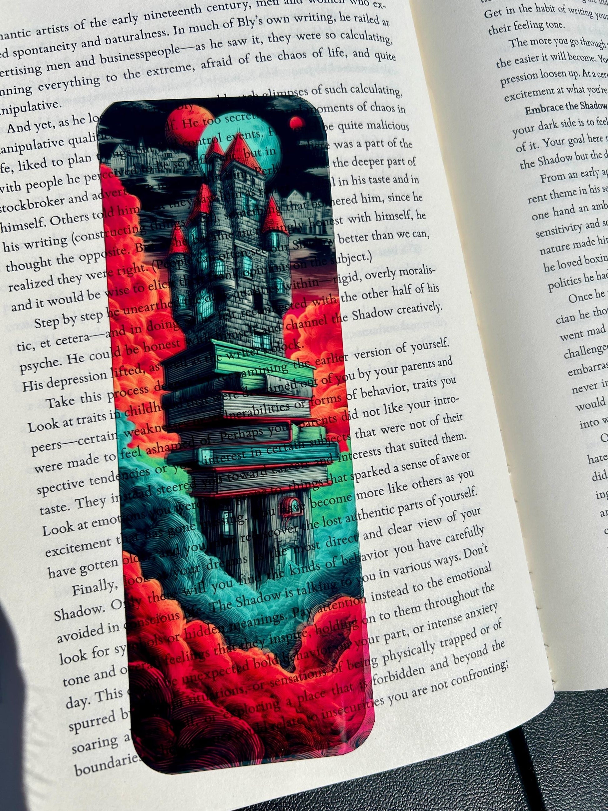Build your imagination sky-high with this surreal Book Castle bookmark 📚🌌
