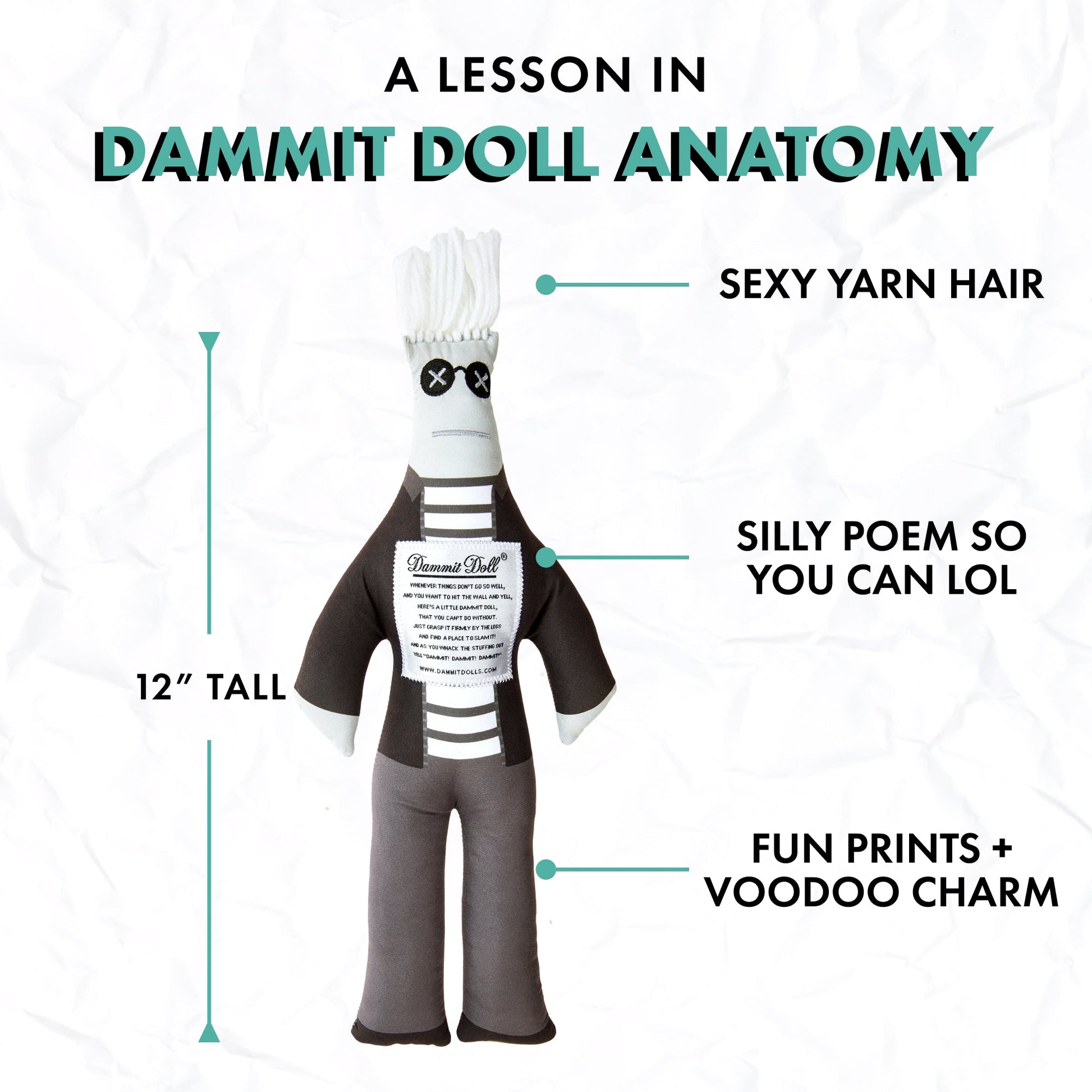 Channel your inner iconoclast with the Andy Warhol-inspired Dammit Doll, our tribute to the man who turned soup cans into statements and silkscreens into stardom. Sporting Warhol's signature black-and-white striped shirt and wild, tousled hair, this doll is ready to absorb all your creative frustration with avant-garde flair. It's the perfect outlet for those moments when your ideas aren't clicking, your projects aren't landing, or your muse is just plain missing.