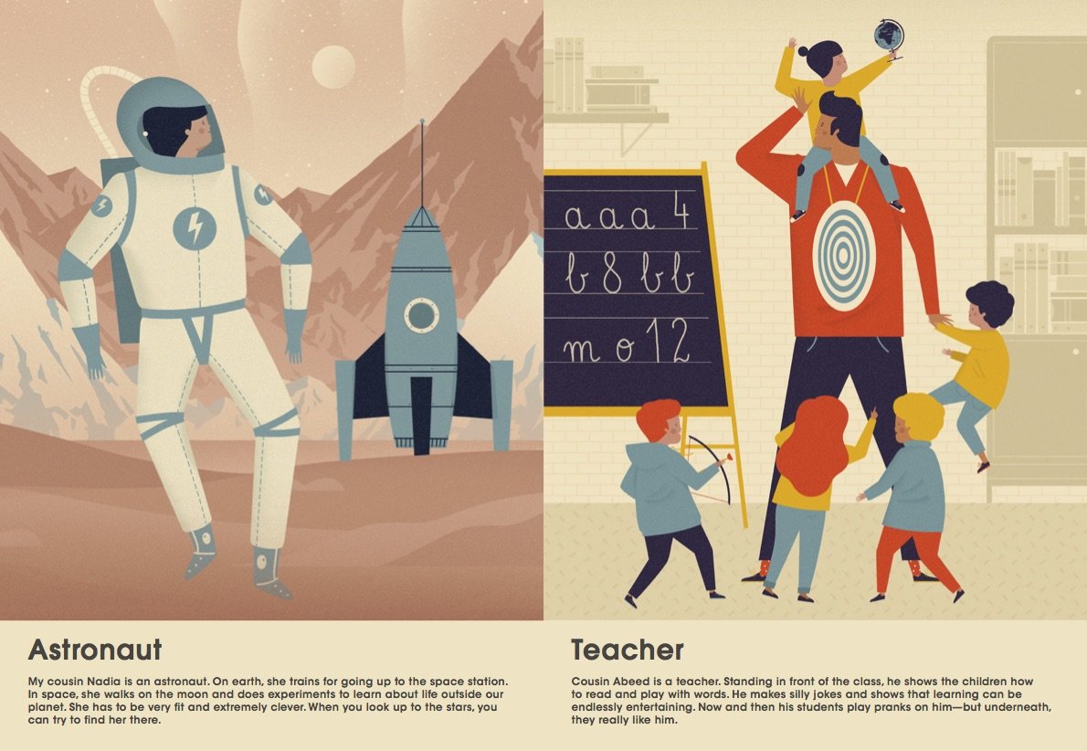 Looking at the adults around them, children curiously ponder possible professions. Father, mother, uncle, big sister: every family member serves as career inspiration. This is the new collaboration with Dawid Ryksi What Do Grown-Ups Do All Day? provides children with creative fuel for professional daydreams and various career paths in Ryski's iconic vintage style and easy to read aloud descriptions.