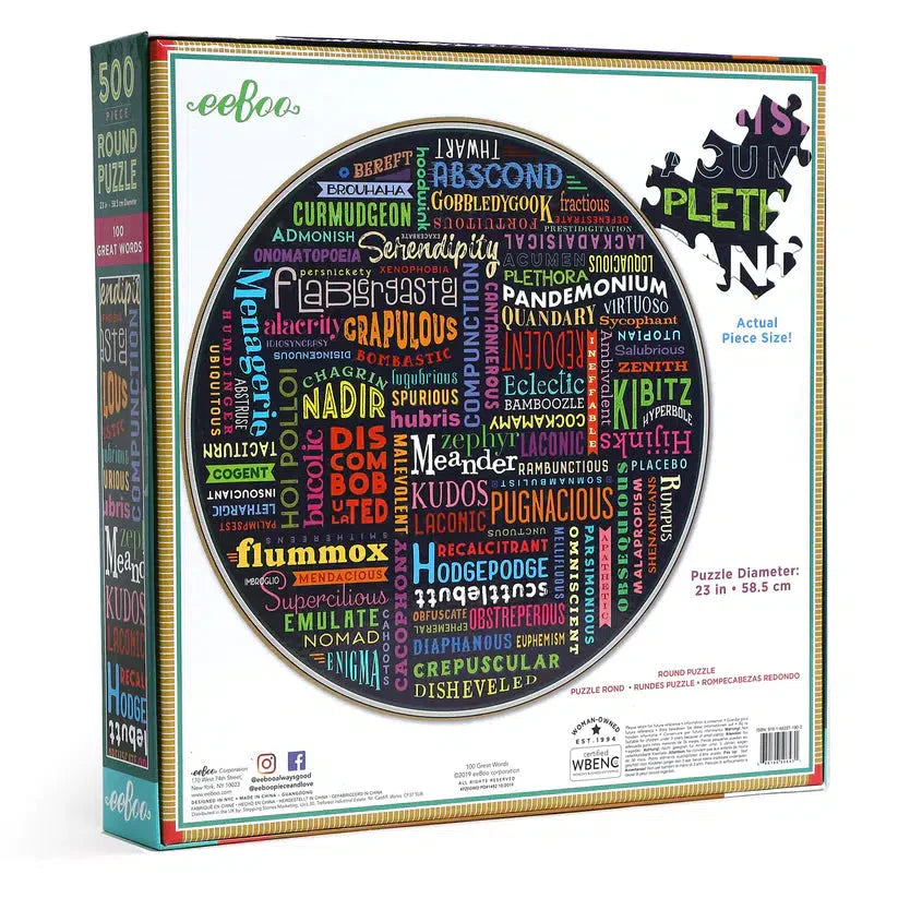 100 Great Words 500 Piece Round Jigsaw Puzzle eeBoo