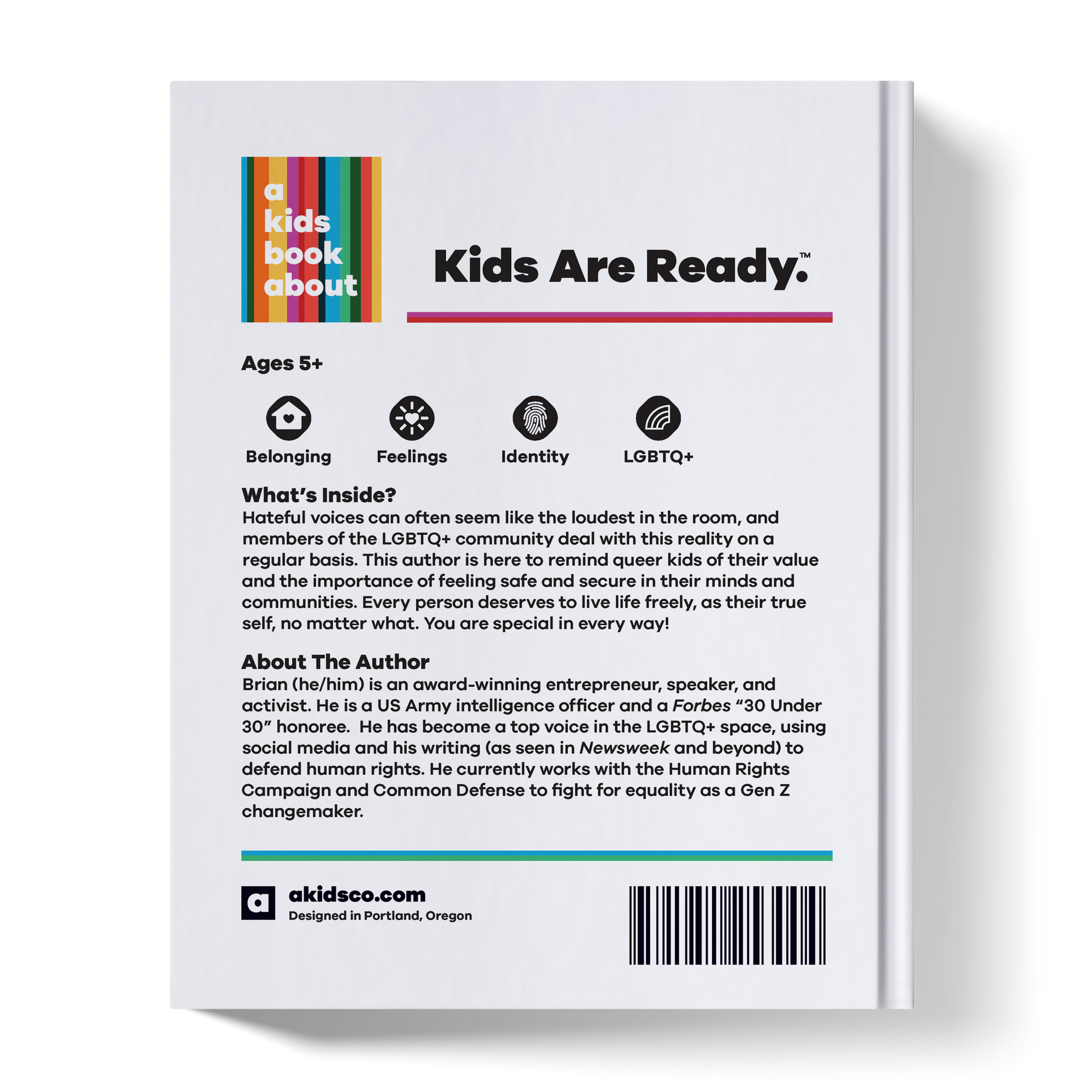 Hateful voices can often seem like the loudest in the room, and members of the LGBTQ+ community deal with this reality on a regular basis. This author is here to remind queer kids of their value and the importance of feeling safe and secure in their minds and communities. Every person deserves to live life freely, as their true self, no matter what. You are special in every way!