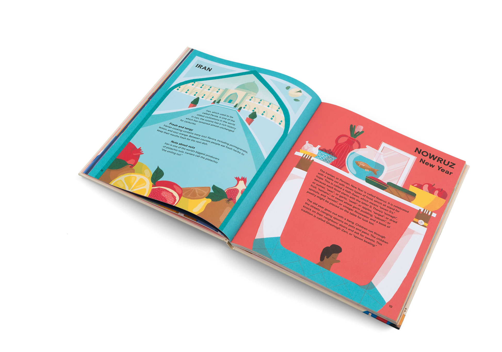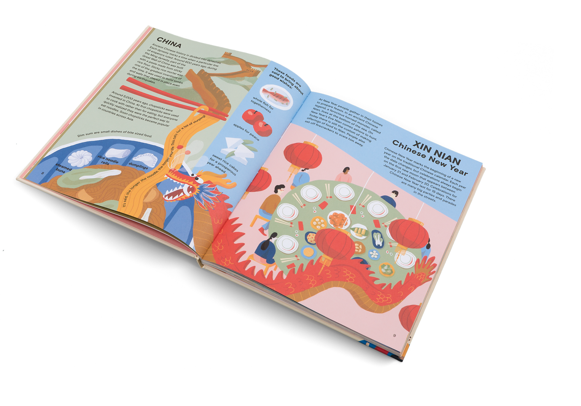 Food glorious food! Everyone loves a feast with the family … even the little ones! A Taste of the World travels across the globe uncovering different dishes, traditions, cultures and festivals from Egypt to Germany, from China to America. Learn about the origins of Thanksgiving in America, Bastille Day in France, Christmas in Germany, Hanami in Japan, Chinese New Year, and a good old roast dinner in the UK. Food brings people together. A Taste of the World will give you an appetite to explore – not just through your belly. Beth Walrond creates striking color palettes, playful textures and idiosyncratic characters that joyously warm each spread. As children will learn about foods, they will also understand how cultural practice can shape the way we eat.