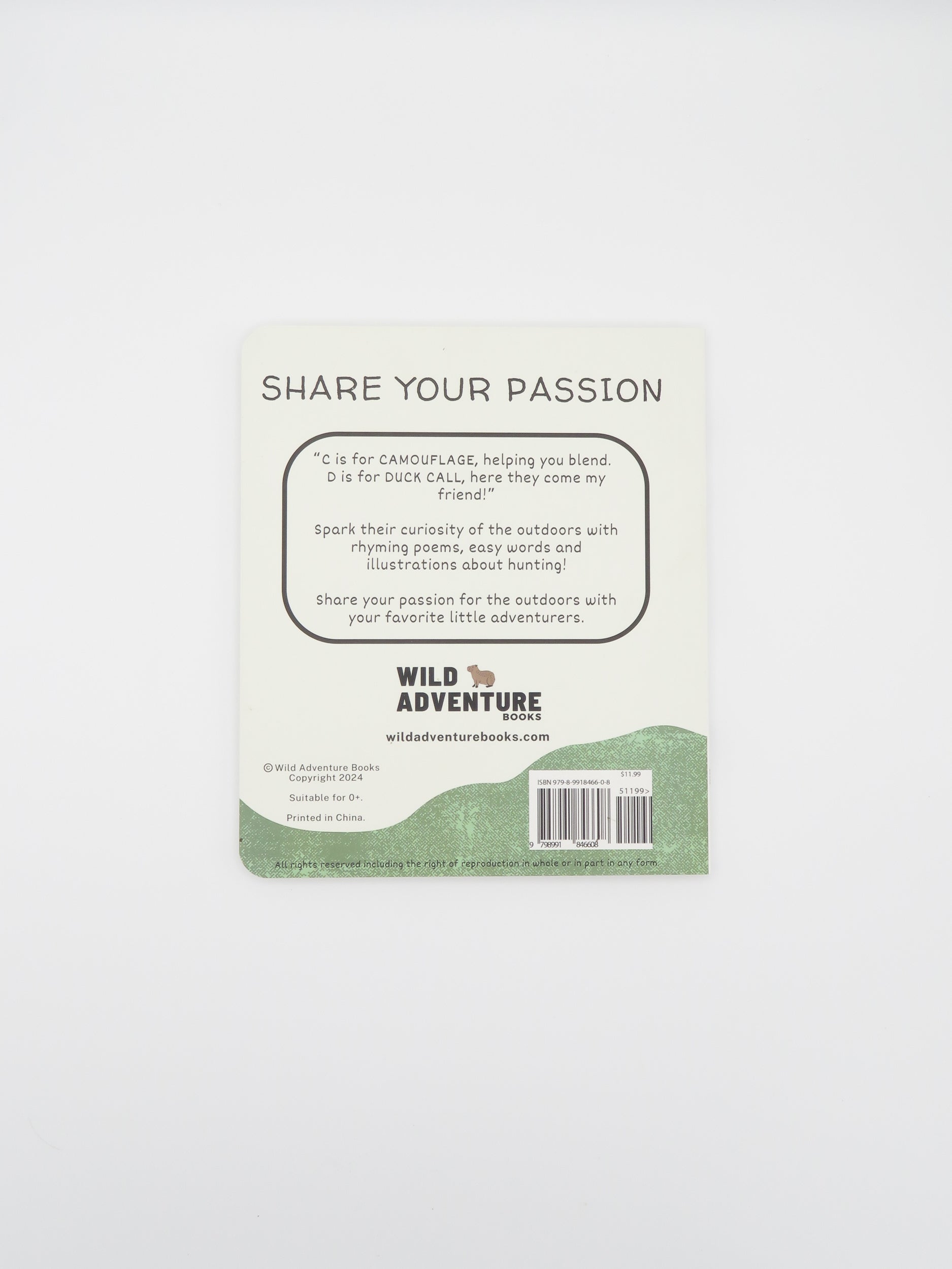 Introduce young children to the exciting world of hunting and the outdoors with this fun and educational alphabet book for kids! Filled with easy-to-read rhymes, simple vocabulary, and colorful illustrations, this book is perfect for little outdoor adventurers.