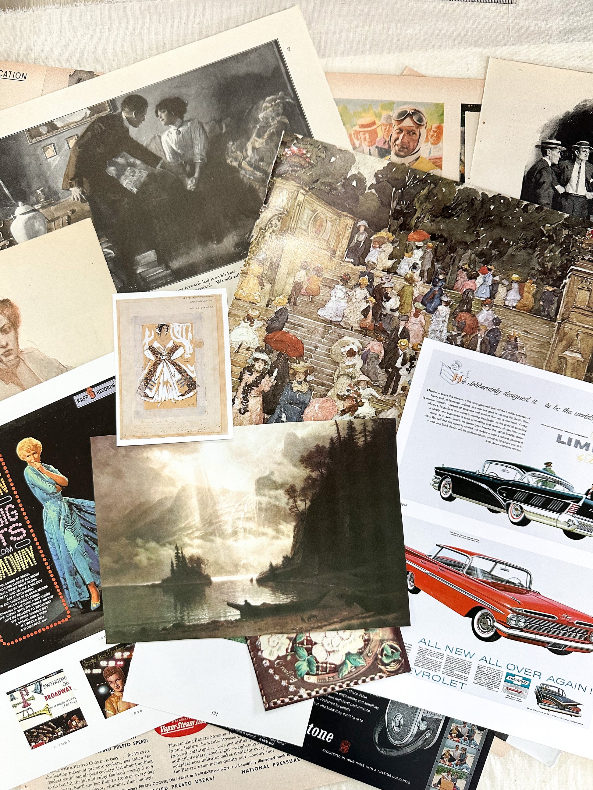Assorted clippings from vintage magazines, books, and other publications. You will receive 50+ images of various sizes and subject matter. The perfect ephemera for journaling, collages, home decor crafts, and DIY projects.