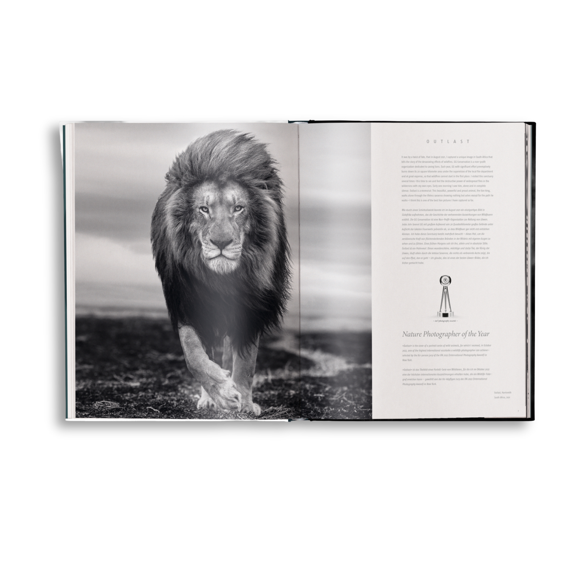 Named "Nature Photographer of the Year 2022," Beusker is celebrated for capturing wild animals up close, often within two meters, making eye contact that feels profoundly personal. His use of short focal lengths reveals every detail—every wrinkle, hair, and muscle—of creatures like giraffes, buffaloes, zebras, elephants, and big cats. The intimacy of these portraits creates the impression that the animals might step right out of the pages.