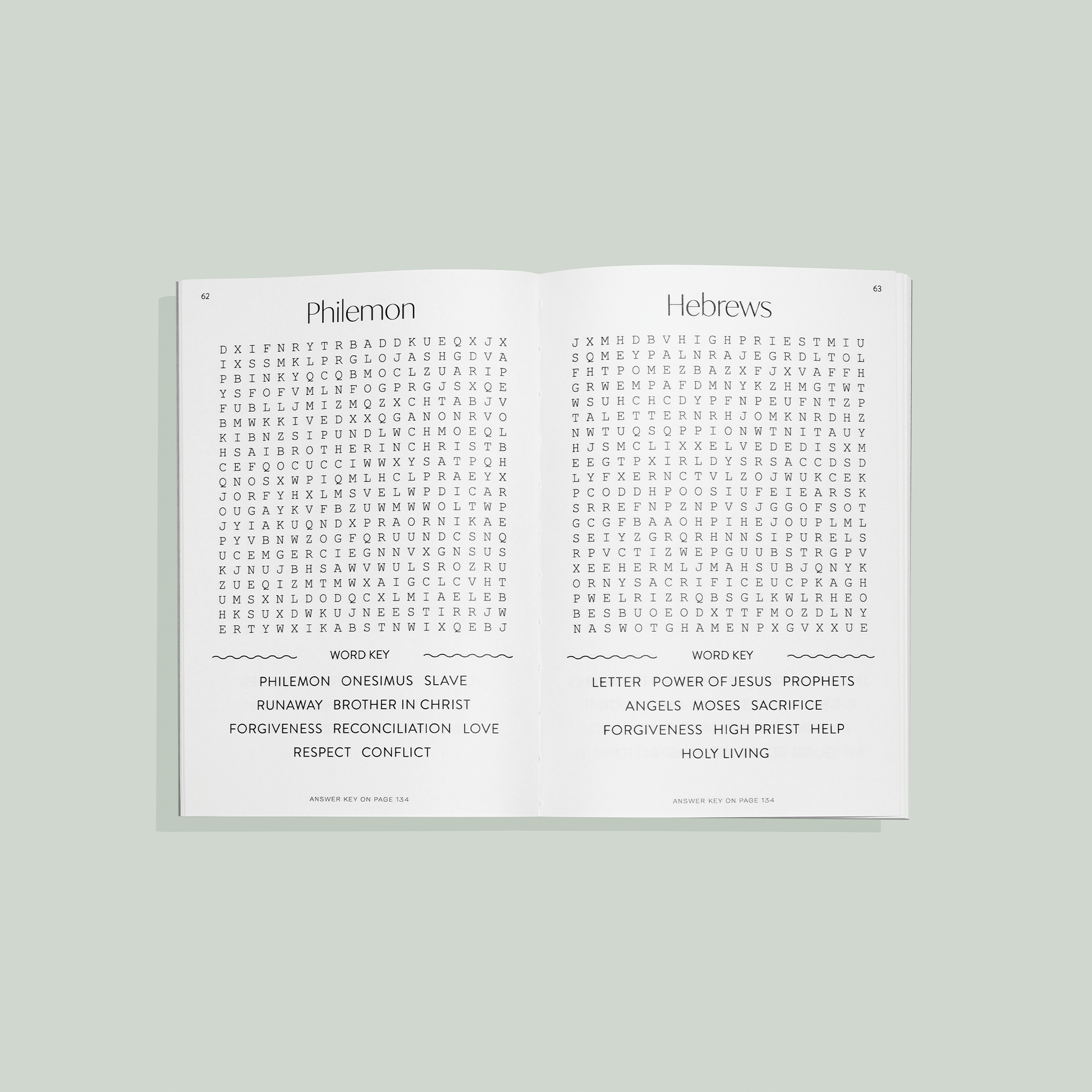 Explore God's Word as you search through engaging, bible-themed puzzles in this fun bible word search book!