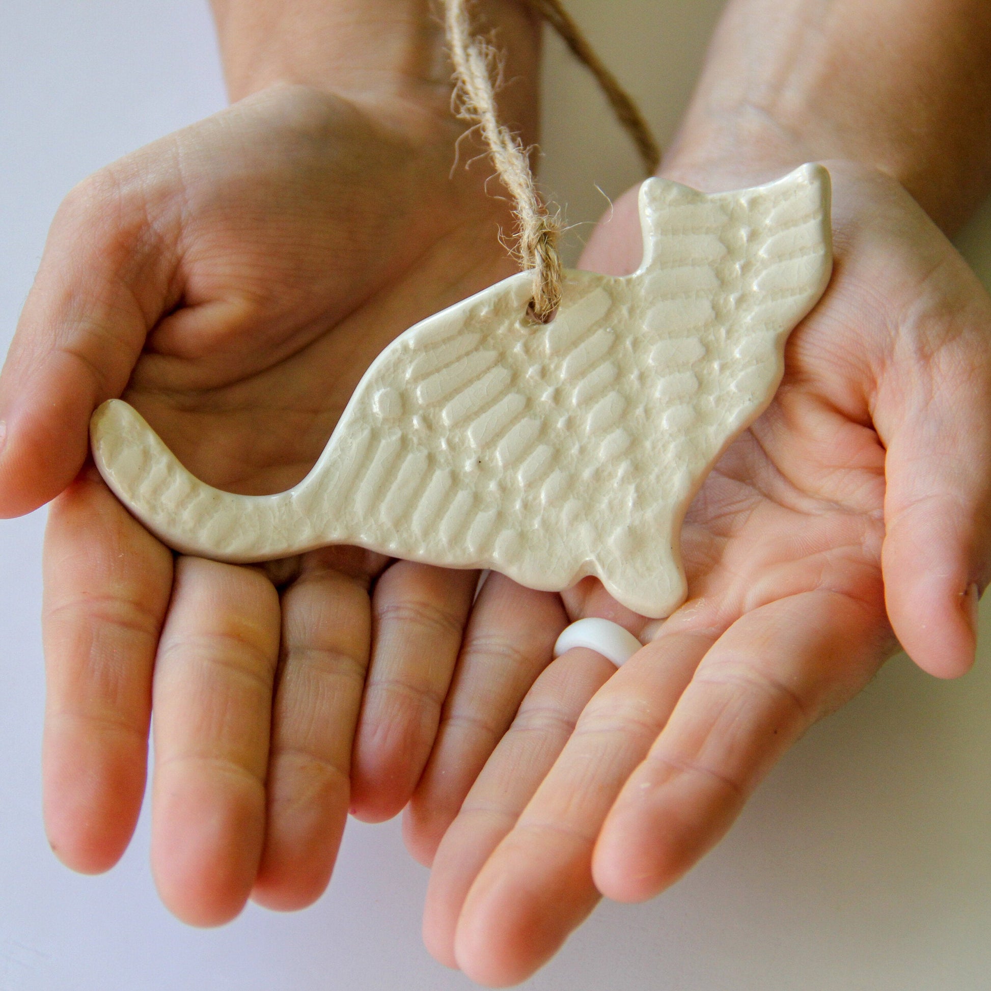 Celebrate the cat lover in your life with this Cat Ornament, perfect to hang on the Christmas tree, tie to a gift, or gift to your loved ones. These precious, handmade ornaments are pressed with lace, and are sure to make you and your loved ones smile this Christmas season.