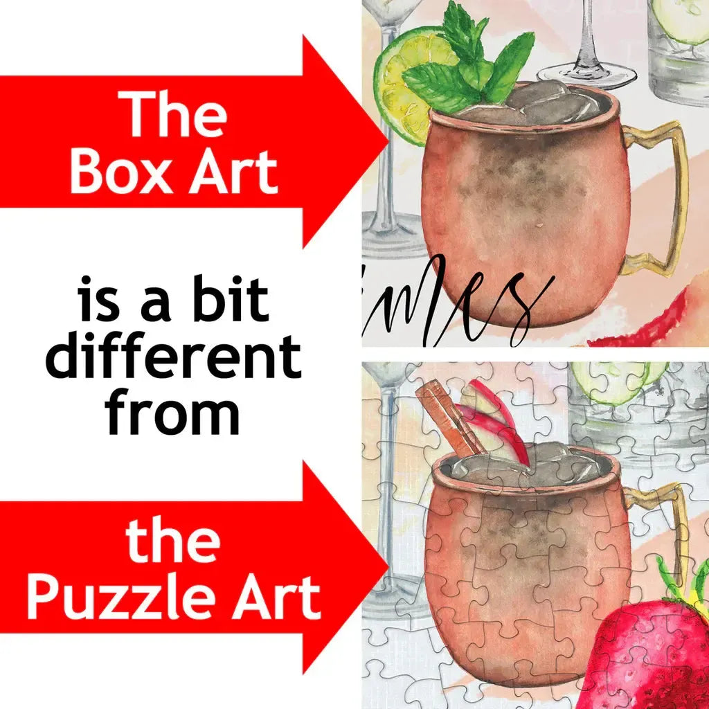 Painting since she was a child, Maria Barbieri ahs always loved to create beautiful things. When painting she feels time both stands still and passes in a flash. Her work consists of mostly water colored pieces, painted by hand and then finely tuned digitally. Within this jigsaw puzzle, Maria mixed up a variety of cocktails... combined with a few twists... it's sure to create a buzz! Cheers!