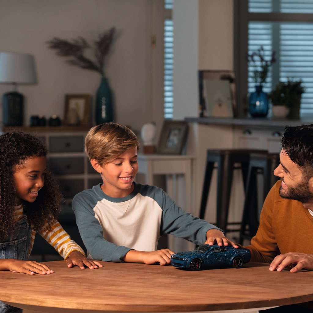 Get on the fast track to fun with our 3D “Dodge Challenger SRT® Hellcat Redeye Widebody” puzzle, complete with rotating wheels! Supercharge your fun with our “Dodge Challenger SRT® Hellcat Redeye Widebody” 3D puzzle! Like its full-sized 797-horsepower inspiration, our 1:18 scale model sports wide tires and widebody fender flares. Using our Easy Click Technology, the 108 body pieces are assembled by eye or using the numbers on the back — no glue required. Additional pieces form the base and accessories, including working wheels! Makes a cool display piece or an impressive gift for any muscle car enthusiast! This 108-piece 3D puzzle comes with an additional 55 accessory parts to build a 1:18 scale model of the Dodge Challenger SRT® Hellcat Redeye Widebody. The puzzle uses unique plastic pieces which slot together to build a sturdy and strong model; no glue required! Each puzzle piece is printed with a number on the reverse side, so you can assemble the puzzle by eye or simply follow the numbers. From fun family times together to long-term health benefits like stress-reducing, mindful moments, there are so many positives about puzzles! They provide a sense of accomplishment and a great break from your daily grind. And they make a thoughtful birthday or Christmas gift. Create memorable moments with Ravensburger premium puzzles today! Fun for ages 10 and up! Measures approximately 10.25 x 4.5 x 3 inches (26 x 11.5 x 7.5 cm) when completed.