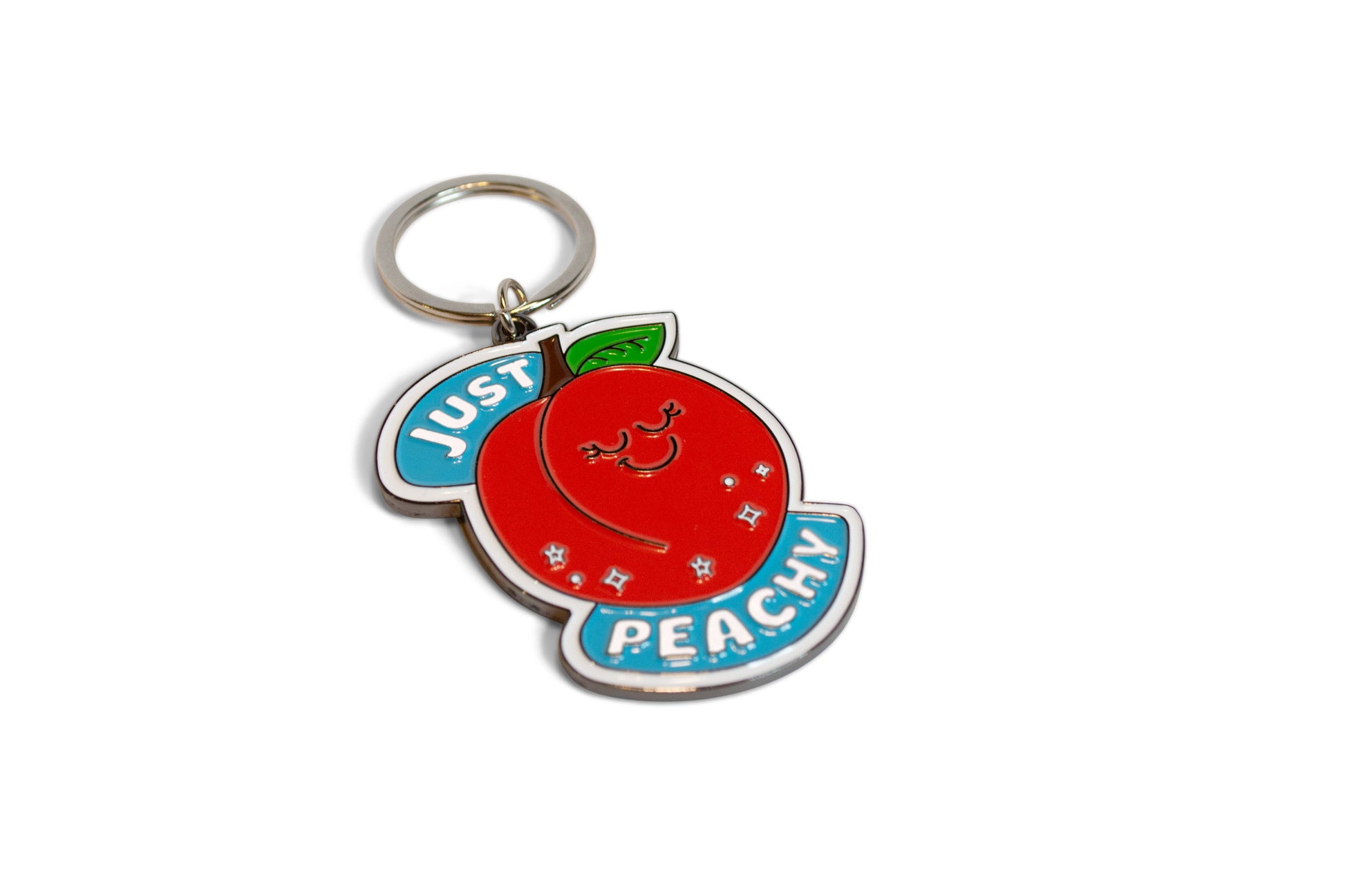 This keychain is just peachy and a little bit cheeky. It's the perfect accessory for anyone who can ap-peach-ciate the good things in life. It would look great on any wallet, purse, or set of keys.