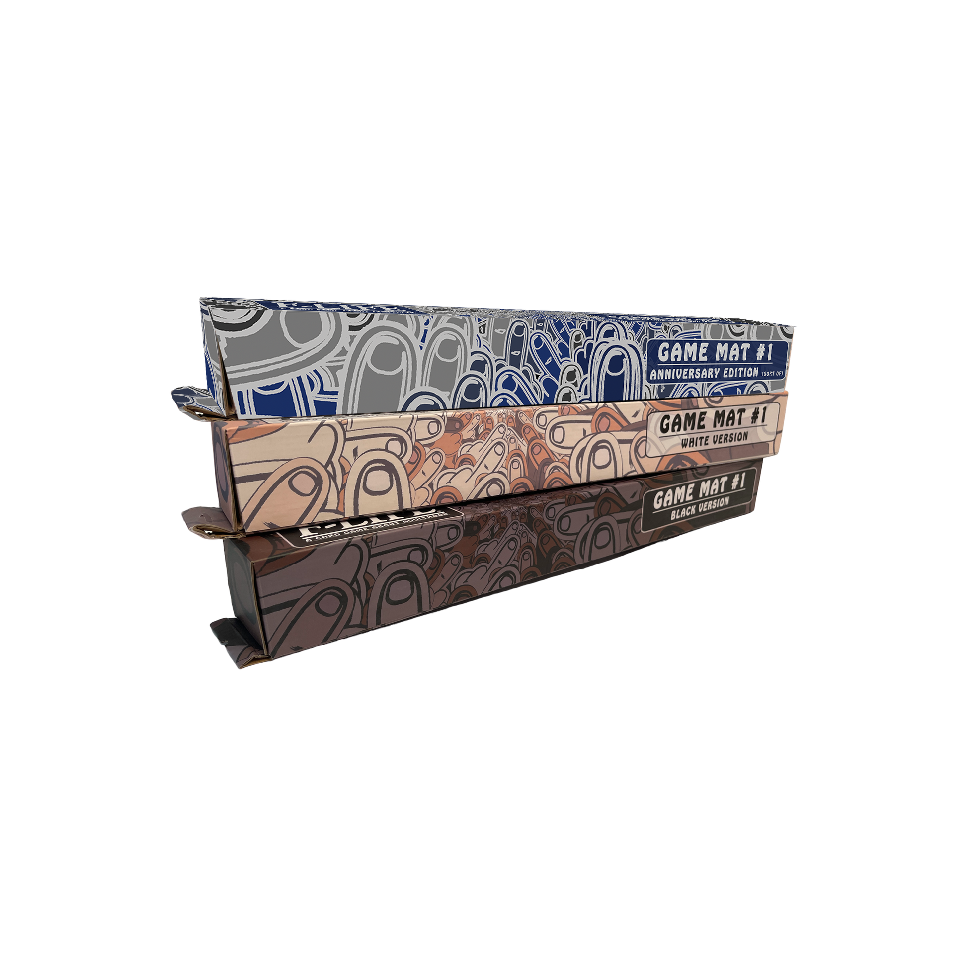 This game mat features deck and discard pile spots to keep your game organized while playing, but it also has places for current and future expansions!