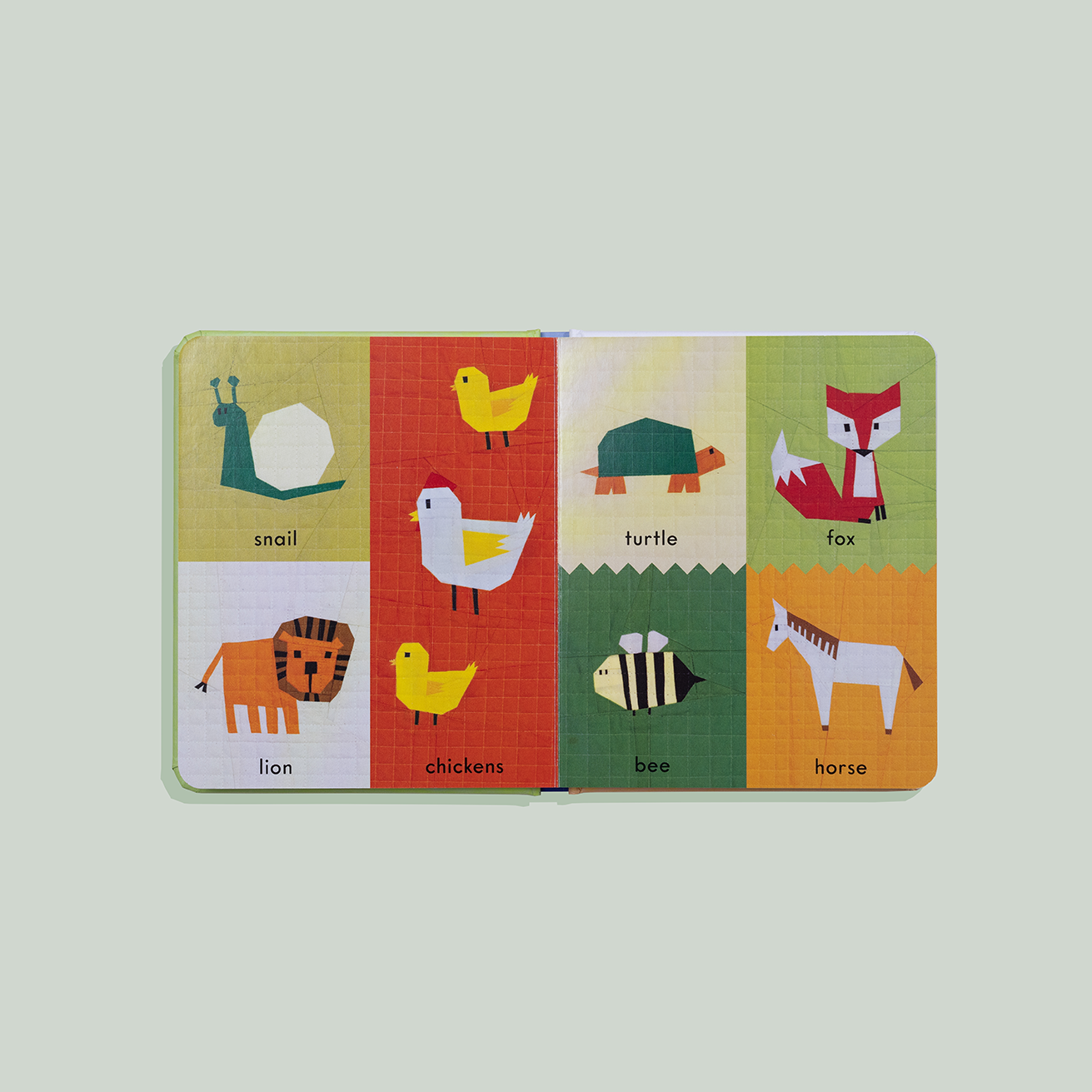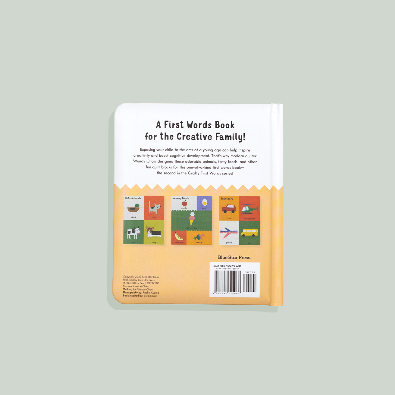 Teach your infant or toddler first words in an engaging and adorable way using the handmade quilt blocks in this durable board book!